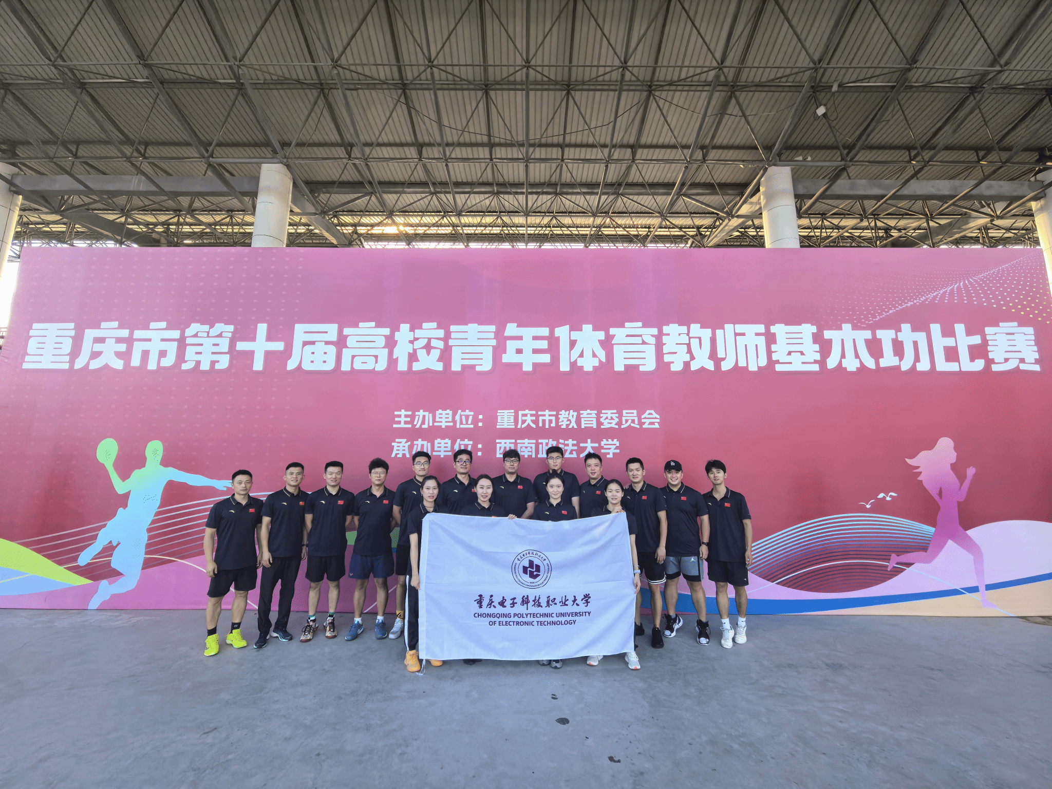 2025926日至28日,重庆市第十届高校青年体育教师基本功比赛成功举办。重庆电子科技职业大学体育与国防教学部选派的16名青年体育教师团队参赛,他们以整齐划一的着装、昂扬饱满的精神风貌,在赛事主题背景板前留下了极具冲击力的集体形象,既展现了个人专业素养,更彰显了学部以赛促教、以体育人的育人理念。