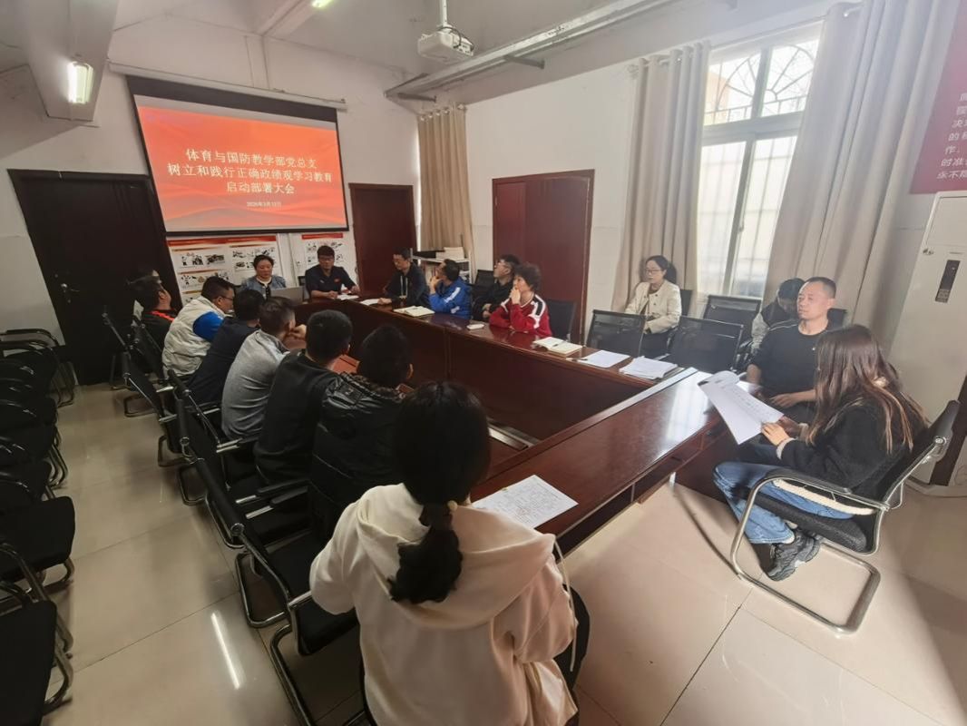 2026年3月12日,重庆电子科技职业大学体育与国防教学部党总支在部门会议室召开树立和践行正确政绩观学习教育启动部署会,传达学习上级和学校党委有关会议和文件精神,对部门学习教育工作进行动员部署。党总支书记冉槐主持会议并作动员讲话,部门班子成员和全体党员参加会议。